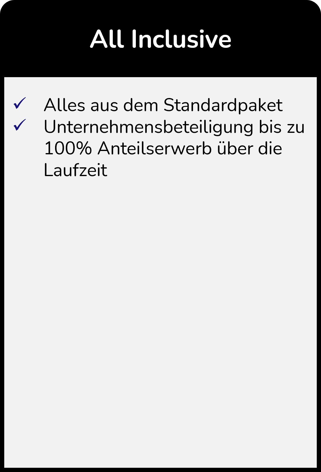 Du hast eine grobe Vorstellung zur Finanzierung des Auf- und Ausbaus Deines Unternehmens?