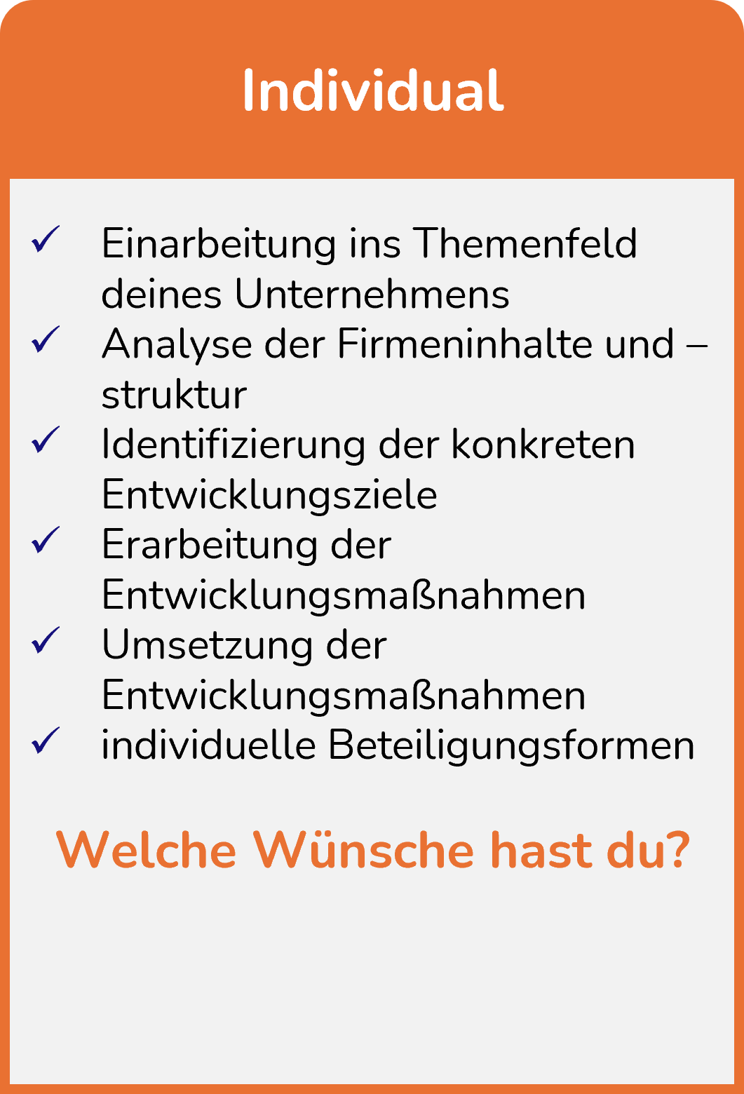 Gemeisam entwickeln wir Deine Unternehmensstruktur: